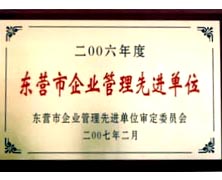 近日,在東營市企業(yè)管理協(xié)會和企業(yè)家協(xié)會聯(lián)合組織的2006年度東營市“企業(yè)管理先進(jìn)單位”、“優(yōu)秀企業(yè)經(jīng)營者”、“企業(yè)管理先進(jìn)個(gè)人”評選活動中,我公司被評選為2006年度企業(yè)管理先進(jìn)單位,副總經(jīng)理王清波被評為企業(yè)管理先進(jìn)個(gè)人,副總經(jīng)理繆文智被評為優(yōu)秀企業(yè)經(jīng)營者。