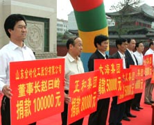 在6月1日廣饒縣開展的“慈心一日捐”活動中,公司董事長趙曰嶺個人向廣饒縣慈善總會捐款10萬元。近幾年來,在企業(yè)迅速發(fā)展的同時,趙總不忘回報社會,積極為地方經(jīng)濟發(fā)展和社會慈善事業(yè)捐款捐物,幫助附近村莊修路、打井,至今已累計捐款500多萬元,樹立了一個勇于承擔社會責任企業(yè)家的良好形象。圖為企業(yè)發(fā)展部趙曰森經(jīng)理代表趙董事長出席捐款儀式。