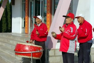 幸福公寓的老人們敲鑼打鼓歡迎鎮(zhèn)政府領(lǐng)導(dǎo)及金嶺人的到來