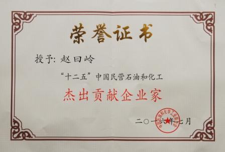 7月2日,2016中國石油和化工民營企業(yè)發(fā)展大會在北京召開。會議由中國石油和化學(xué)工業(yè)聯(lián)合會主辦,十屆人大常委會副委員長顧秀蓮到會并致辭。中國石油和化學(xué)工業(yè)聯(lián)合會會長李壽生、原會長李勇武出席會議。大會由中國石油和化學(xué)工業(yè)聯(lián)合會副會長兼秘書長趙俊貴主持,副會長傅向升宣讀關(guān)于表彰《“十二五”中國石油和化工優(yōu)秀民營企業(yè)、“十二五”中國石油和化工優(yōu)秀民營企業(yè)家的決定》。在會議上,我公司被授予“十二五”中國石油和化工優(yōu)秀民營企業(yè),董事長趙曰嶺被評為“十二五”中國民營石油和化工杰出貢獻企業(yè)家,受到大會隆重表彰。