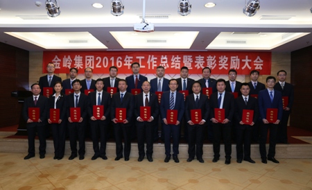 1月21日,金嶺集團2016年工作總結(jié)暨表彰獎勵大會在金嶺國際黃河廳及各分會場召開,公司班組長、助師以上干部參加了會議。會議對在優(yōu)勝對比、管理創(chuàng)新、技術(shù)創(chuàng)新、按章管理中做出突出貢獻、取得優(yōu)異成績的員工進行了表彰,受表彰人員代表做了表態(tài)發(fā)言,董事長趙曰嶺做了重要講話。