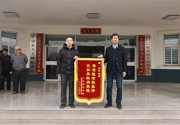 2019年1月30日,在中華民族傳統(tǒng)節(jié)日己亥豬年春節(jié)即將到來之際,金嶺集團總裁趙棟一行到大王鎮(zhèn)敬老院走訪慰問,為每位老人送去一份營養(yǎng)品新春愛心大禮包,以表達公司對老年人的關愛之情。大王鎮(zhèn)人大主席侯向斌、敬老院院長陳洪敏對公司多年來關注養(yǎng)老事業(yè)給予高度評價。 尊老敬老是中華民族的傳統(tǒng)美德。多年來,在企業(yè)快速發(fā)展的同時,金嶺集團崇尚敬老事業(yè),每年都為當?shù)鼐蠢显旱睦先怂腿ノ繂柶?,體現(xiàn)了對老年人的關心關愛,營造了愛老敬老的社會氛圍。 在多年來的發(fā)展歷程中,金嶺集團勇于承擔社會責任,積極參與愛老敬老、環(huán)保、扶貧、救災、助殘、扶危濟困等公益慈善事業(yè),大力支持當?shù)亟逃?、文化、醫(yī)療、基礎設施建設,為地方各項社會事業(yè)發(fā)展做出了突出貢獻。