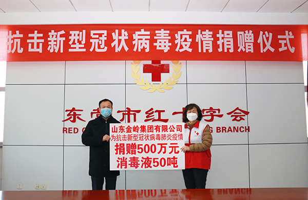 金嶺集團(tuán)向東營市紅十字會愛心捐贈500萬元及50噸消毒液