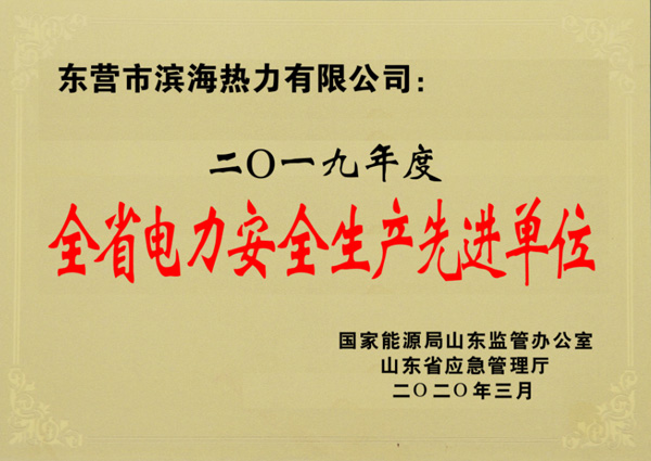 2020年3月2日,國家能源局山東監(jiān)管辦公室、山東省應(yīng)急管理廳下發(fā)文件,授予東營市濱海熱力有限公司“2019年度全省電力安全生產(chǎn)先進(jìn)單位”榮譽(yù)稱號(hào),以表彰公司在全省電力安全生產(chǎn)工作中做出的突出成績。2019年,濱海熱力公司深入開展電力安全生產(chǎn)專項(xiàng)整治行動(dòng)、電力行業(yè)“安全生產(chǎn)月”活動(dòng),圓滿完成新中國成立 70周年系列慶?;顒?dòng)電力安全保障任務(wù),為保持全省電力安全生產(chǎn)穩(wěn)定運(yùn)行做出了突出貢獻(xiàn)。