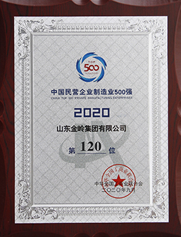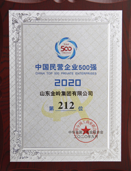 2020年9月10日,2020中國民營企業(yè)500強(qiáng)峰會(huì)在北京召開。在會(huì)上,全國工商聯(lián)黨組成員、副主席魯勇發(fā)布“2020中國民營企業(yè)500強(qiáng)”、“2020中國制造業(yè)民營企業(yè)500強(qiáng)”榜單,金嶺集團(tuán)入榜“2020中國民營企業(yè)500強(qiáng)”,位列第212位,同時(shí)入榜“2020中國民營企業(yè)制造業(yè)500強(qiáng)”,位列第120位。