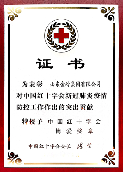 2021年5月,山東金嶺集團有限公司被中國紅十字會授予“中國紅十字會博愛獎章”。突襲而至、來勢洶洶的新冠肺炎疫情持續(xù)對全社會工業(yè)生產帶來了深刻的影響,公司在克服重重困難、迅速恢復正常生產經營的同時,積極捐款捐物支援疫情防控工作,先后向各級紅十字會愛心捐款500萬元,并多次支援消毒液、口罩等防疫物資。中國紅十字會給予了高度評價:金嶺集團的愛心捐贈,彰顯了新時代民營企業(yè)強烈的社會責任感,體現(xiàn)了大企業(yè)的擔當精神。