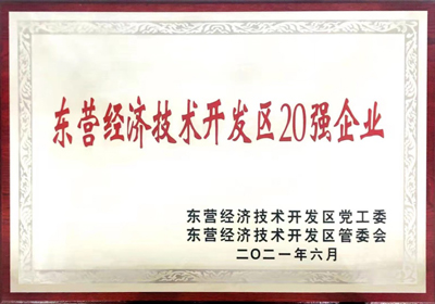 2021年7月,在東營經(jīng)濟(jì)技術(shù)開發(fā)區(qū)黨工委、東營經(jīng)濟(jì)技術(shù)開發(fā)區(qū)管委會組織召開的“兩優(yōu)一先”表彰暨“實干突破”大競賽、大比武表彰獎勵大會上,山東金嶺新材料有限公司被授予“東營經(jīng)濟(jì)技術(shù)開發(fā)區(qū)20強(qiáng)企業(yè)”,以表彰新材料公司為東營開發(fā)區(qū)經(jīng)濟(jì)建設(shè)取得的突出成績。