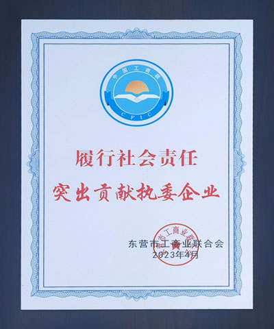 2023年4月,東營市工商業(yè)聯(lián)合會授予金嶺集團 “履行社會責(zé)任突出貢獻執(zhí)委企業(yè)”榮譽稱號,對多年來公司堅持發(fā)展不忘回饋社會、踐行企業(yè)社會責(zé)任的擔(dān)當(dāng)精神給予表彰。
