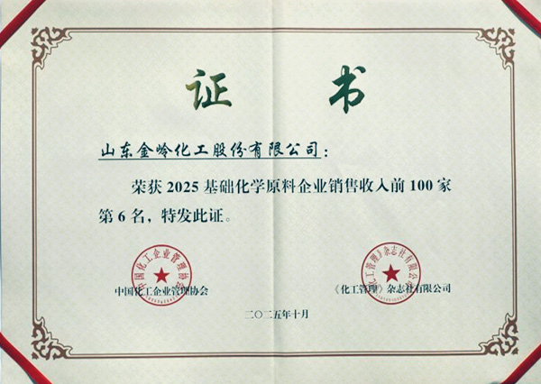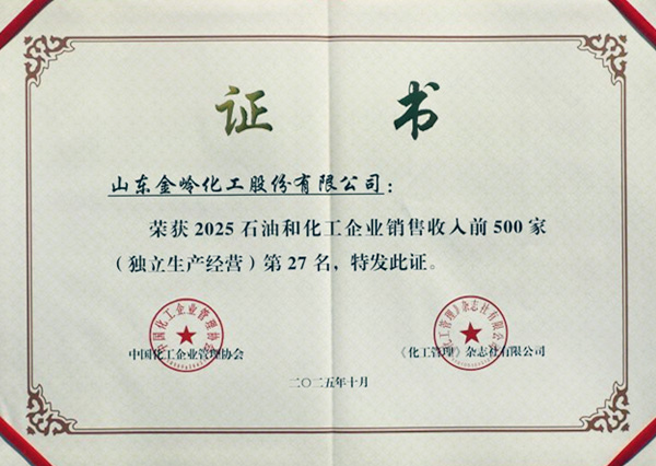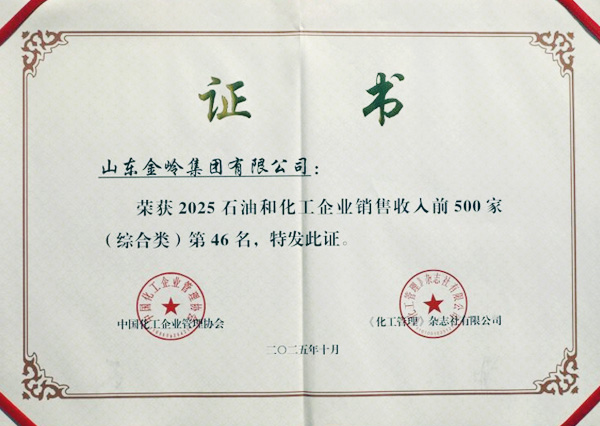 2025年10月23日,中國化工企業(yè)管理協(xié)會在江西新干舉辦了以“數(shù)智新引擎、引領(lǐng)新征程”為主題的2025石油和化工企業(yè)銷售收入前500強(qiáng)發(fā)布會,發(fā)布了2025中國石油和化工企業(yè)500強(qiáng)榜單,金嶺集團(tuán)位列“2025石油和化工企業(yè)銷售收入前500家”第46位;金嶺化工再次入圍“2025基礎(chǔ)化學(xué)原料企業(yè)銷售收入前100家,位列第6位;位列“2025石油和化工企業(yè)銷售收入前500家”第27位。