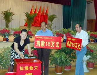 6月6日,在廣饒縣召開的支援四川地震災(zāi)區(qū)再動員大會上,我公司再次向災(zāi)區(qū)捐款15萬元,奉獻(xiàn)金嶺人的一片愛心,全力支持災(zāi)區(qū)人民重建家園,恢復(fù)生產(chǎn)。