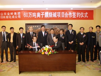 2009年4月27日,我公司與日本旭化成集團在東營市開發(fā)區(qū)管委會就60萬噸離子膜燒堿電解裝置舉行項目合作簽約儀式,公司董事長趙曰嶺與日本旭化成全球營銷總監(jiān)一色聰出席簽約儀式并代表雙方簽字,東營市副市長、開發(fā)區(qū)管委會主任李金琨出席了簽約儀式并接見日方客人一行。電解裝置的順利簽約,標(biāo)志著公司60萬噸離子膜燒堿項目進入實質(zhì)性進展階段。